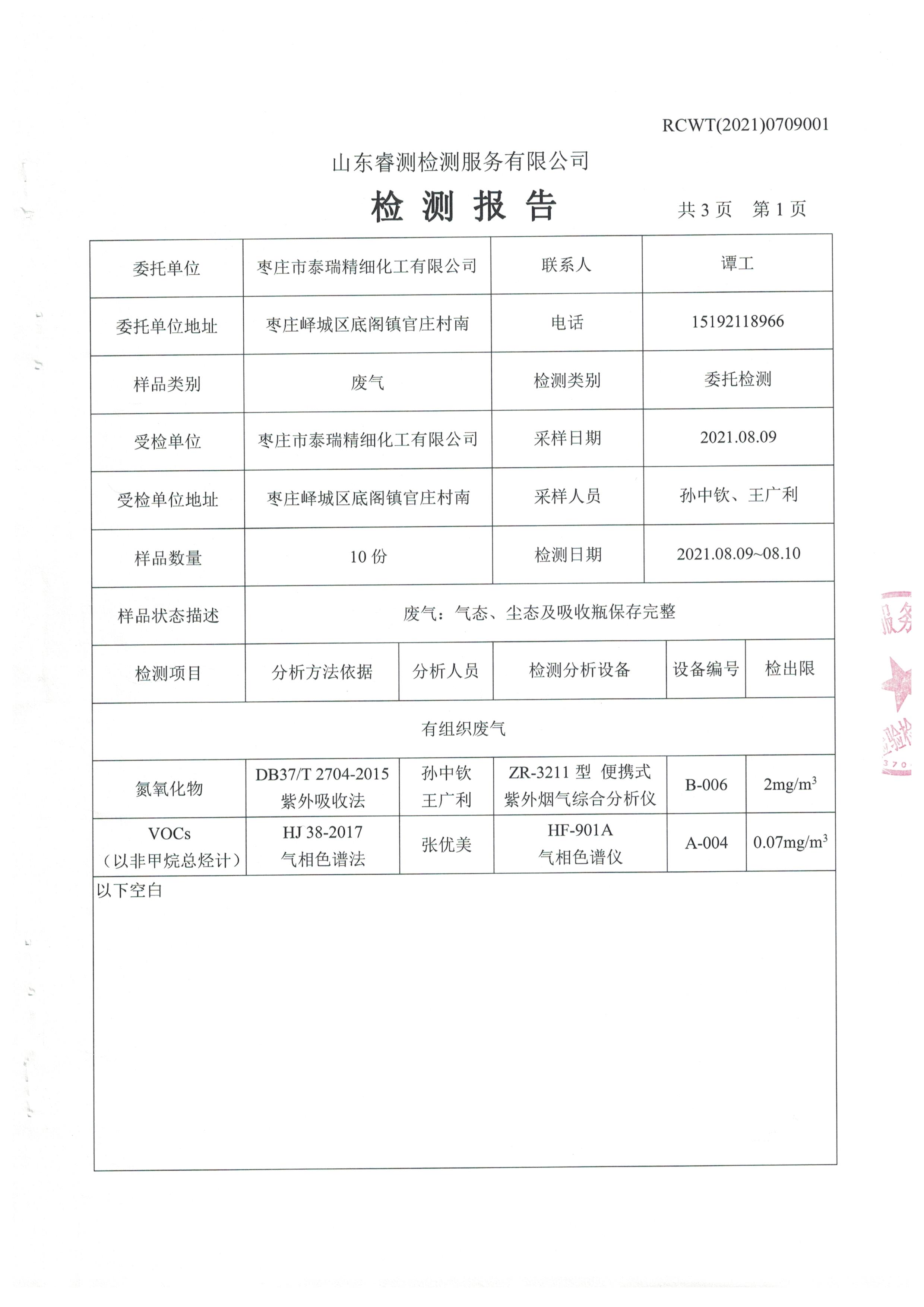 2021年8月份自行檢測(cè)報(bào)告