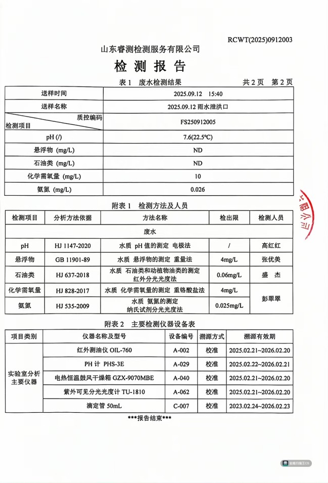 當前位置:首頁>新聞中心>公司動態(tài)>2025年9月廢水檢測報告
